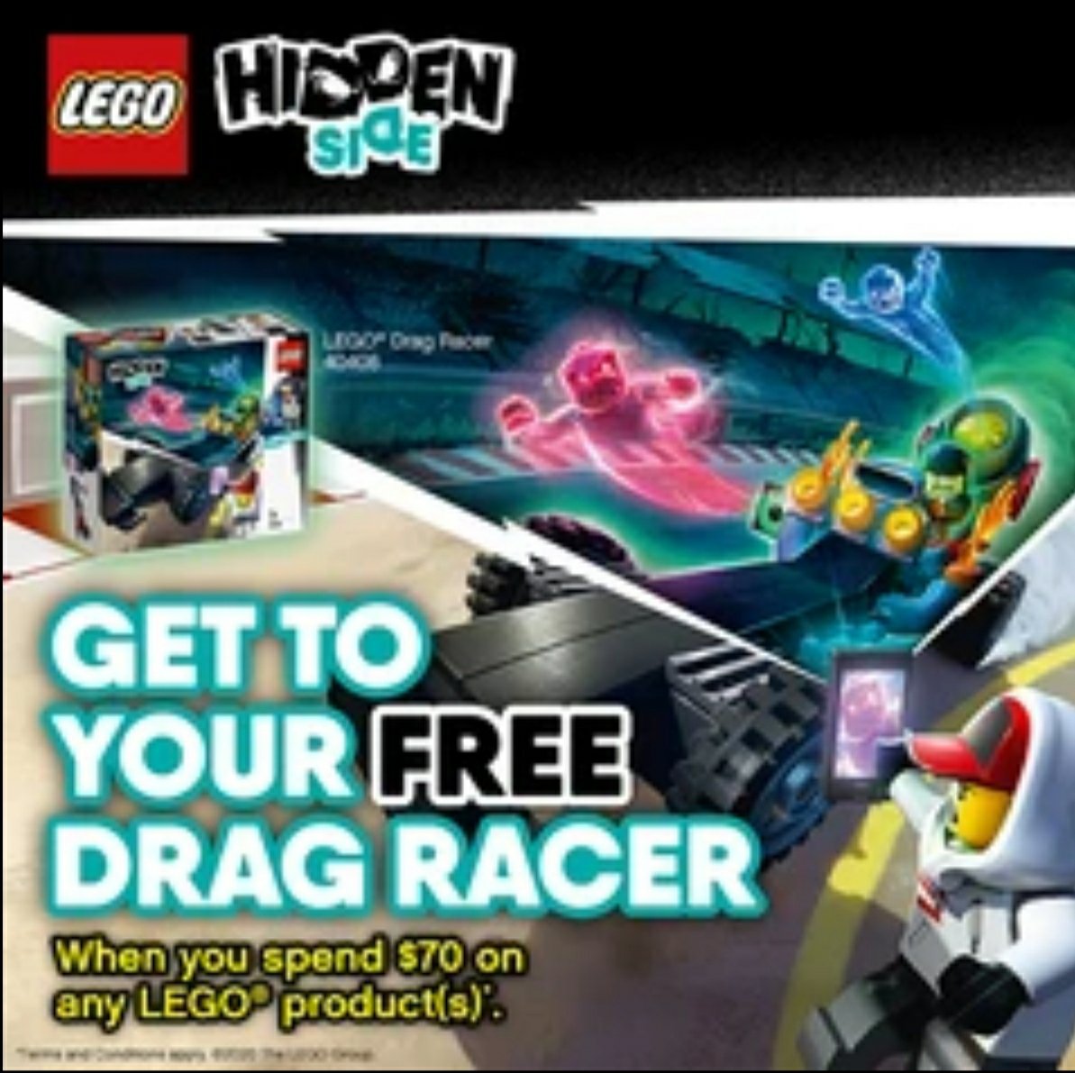 3. FREE 40408 Hidden Side Drag Racer with min. $70+ purchase of LEGO products from 1st February till 12th March.