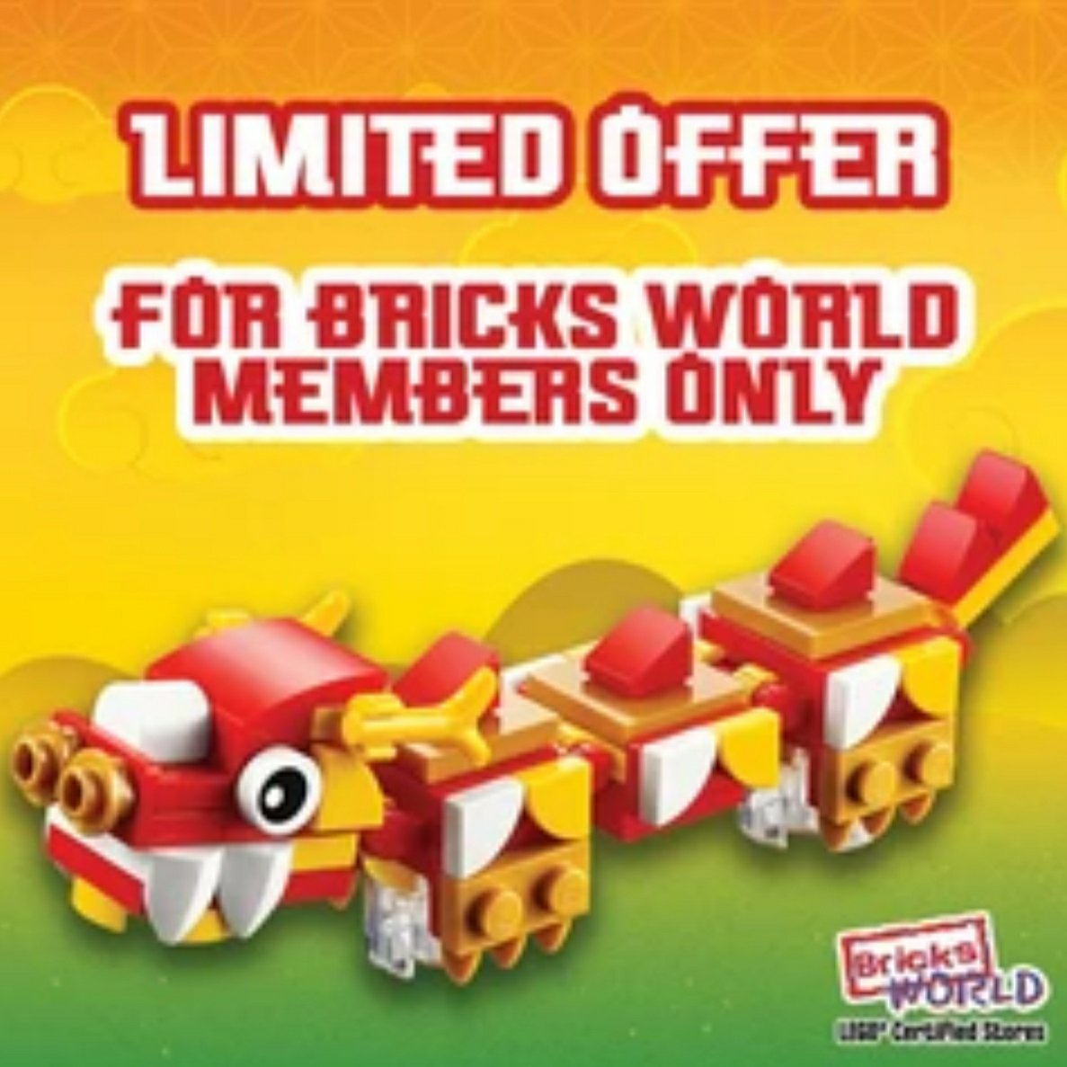 4. FREE 40395 CNY Dragon with min. $68+ purchase of any LEGO products for Bricks World members exclusively at JEM atrium pop-up store from 1-9 February.